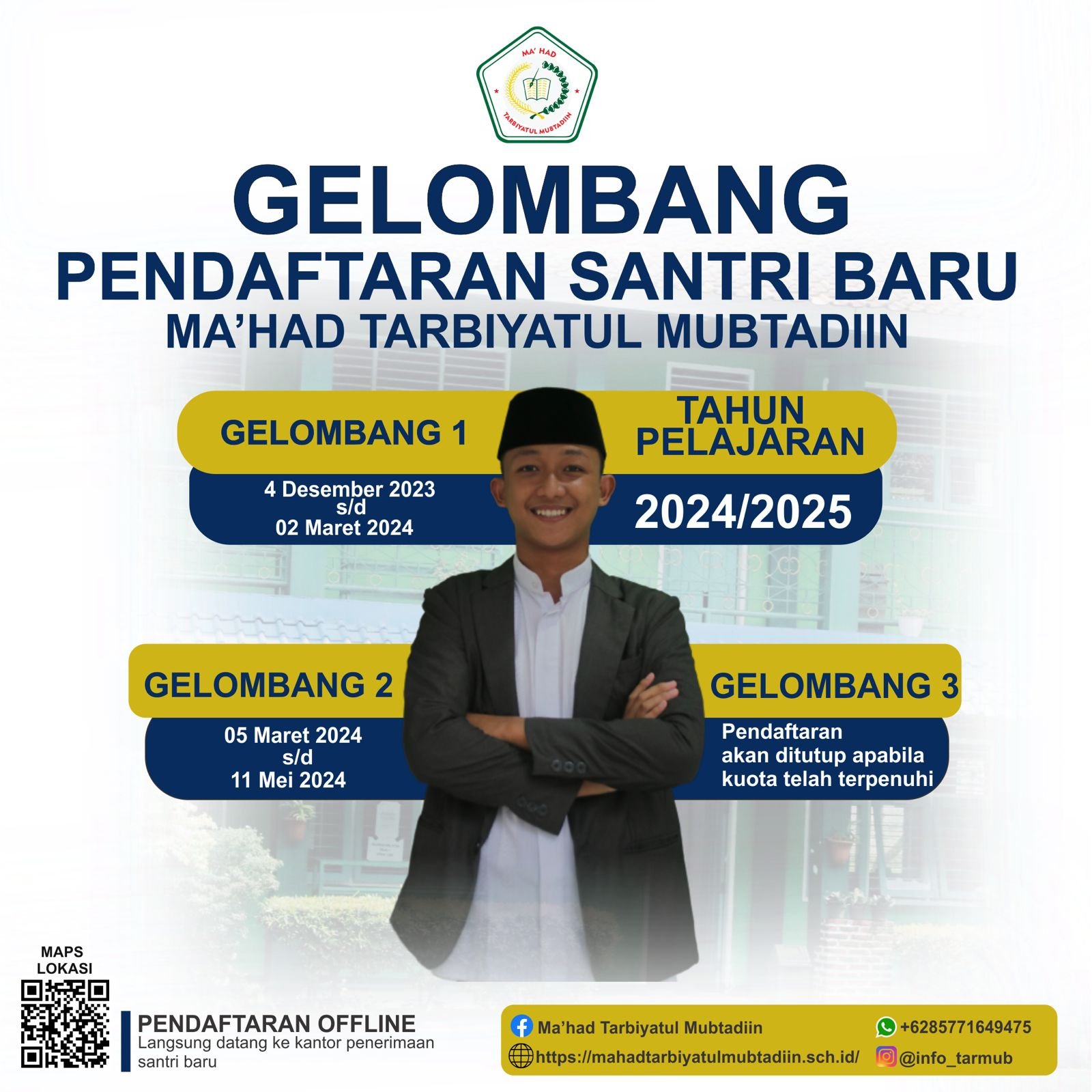 Pendaftaran Santri Baru (PSB) Ma'had Tarbiyatul Mubtadiin Tahun Ajaran 2024/2025